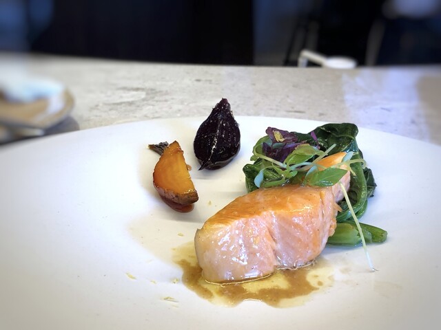 淡水ではなく、海水で育ったサーモンを出されるのは珍しいですね。旨味が濃厚で、美味しい。
