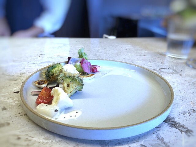 自然薯、ブロッコリー(カレーを入れた衣で揚げてあります)、カリフラワー、トマト、紅芯大根など。それぞれ一手間加えてあるのですが、素材の旨味を生かした調理でお野菜の旨味を感じます。