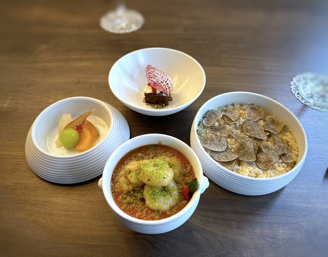 プリプリ海老タップリのソースもトリュフリゾットも美味しい、目でも舌でも愉しめる「3段重」