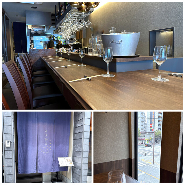 夜はホルモン系がメインのようですけれど、お昼は「海老ソースとトリュフのリゾット」のランチを頂けます。店内はカウンターメインで、開放感があり洒落た雰囲気。