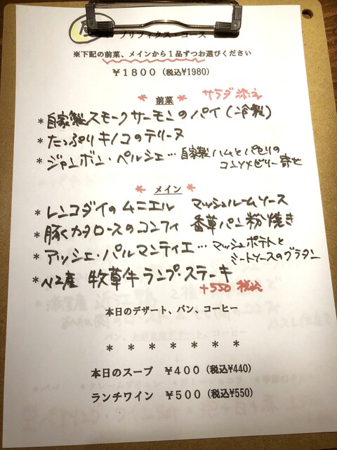 ・ランチメニュー・・基本は1,980円(税込)とリーズナブル。(2024年1月現在は2,200円)