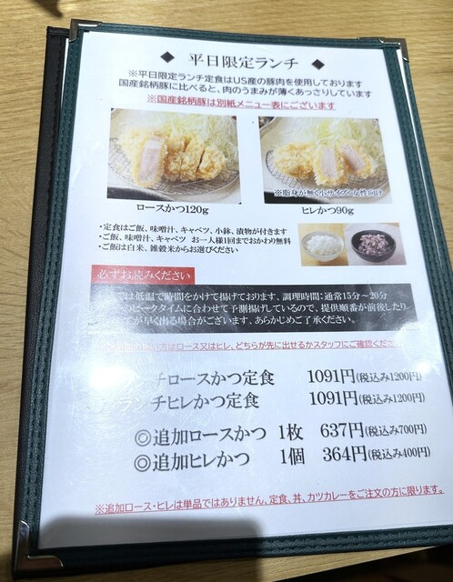 ・平日限定の「ロースカツ:1,200円」を選びました。