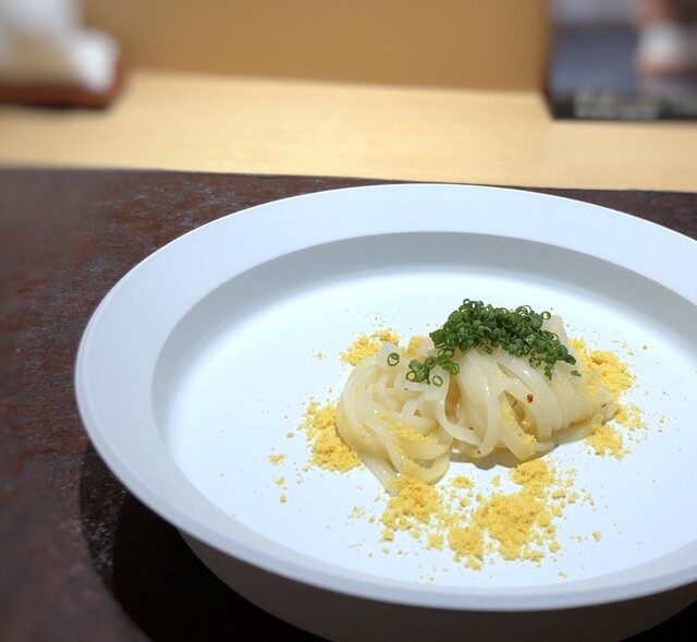 *稲庭うどんをパスタに見立て、唐墨ではなく鰤を使用し唐墨に似せた物。