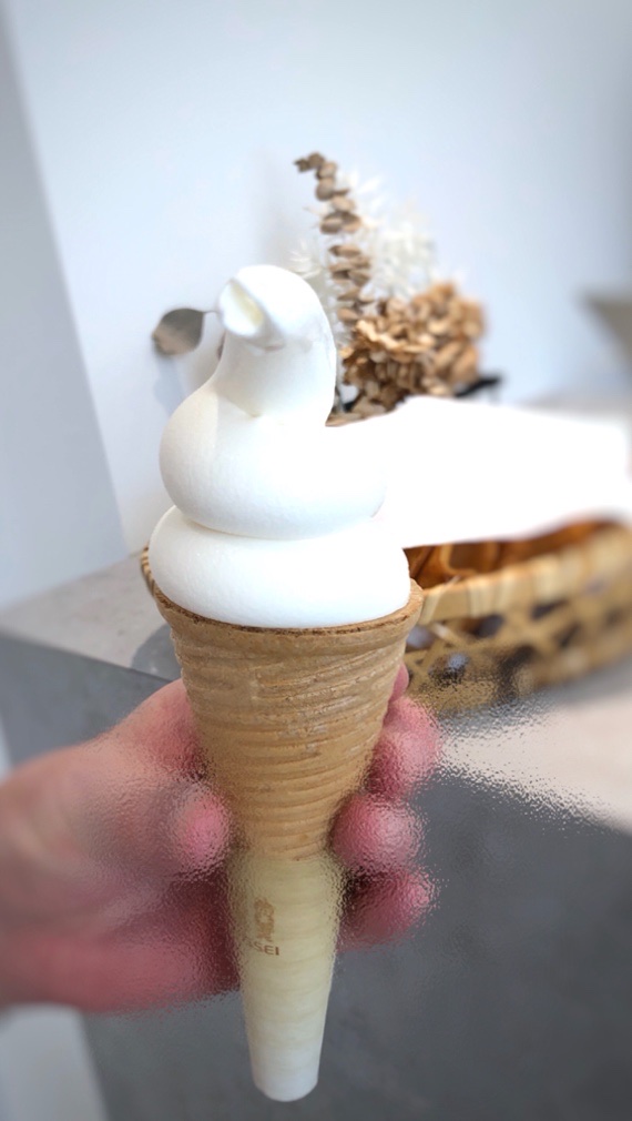 通常のソフトクリームよりももっちり感があり、甘さ控え目です。映え好きの方に、お勧めです。