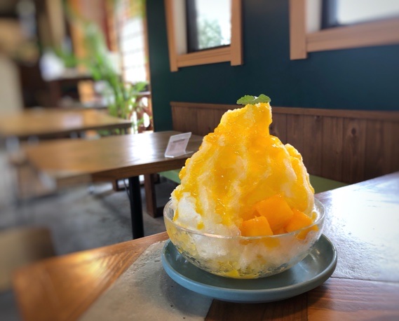 頂いたのは「苺みるく氷(1,030円)」「期間限定、数量限定の「糸島産マンゴーかき氷」どちらもフルーツタップリで美味しいですね。人気店ですから、週末は混むと思います。