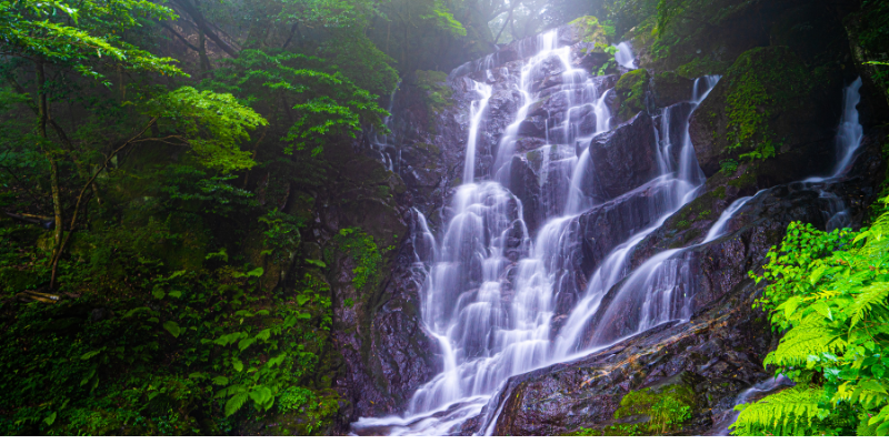 標高900メートルにある羽金山の中腹に位置し、滝の落差は約24メートル、美しい景色と豊富なマイナスイオンが特徴です。