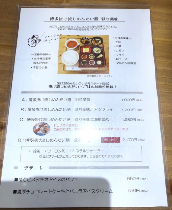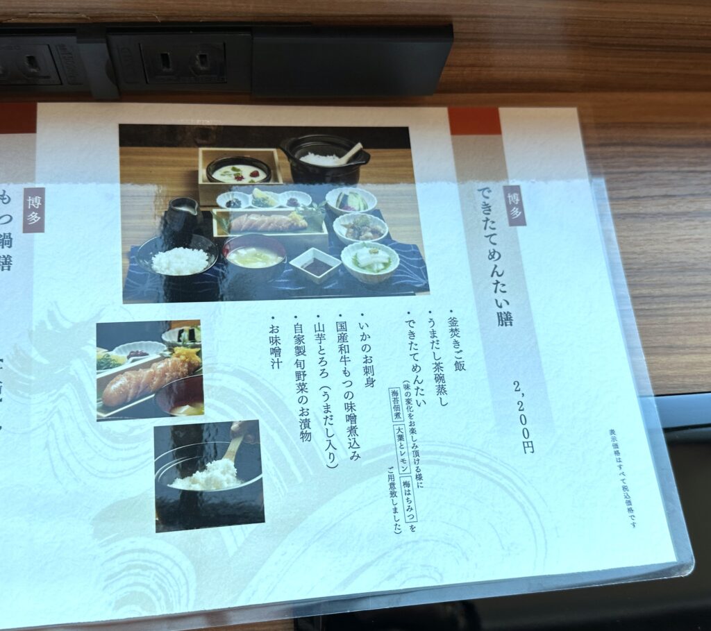 頂いたのは「博多できたてめんたい膳」・・ご飯の炊き上がりに30分ほどかかりますので、お時間は余裕をもってくださいね。