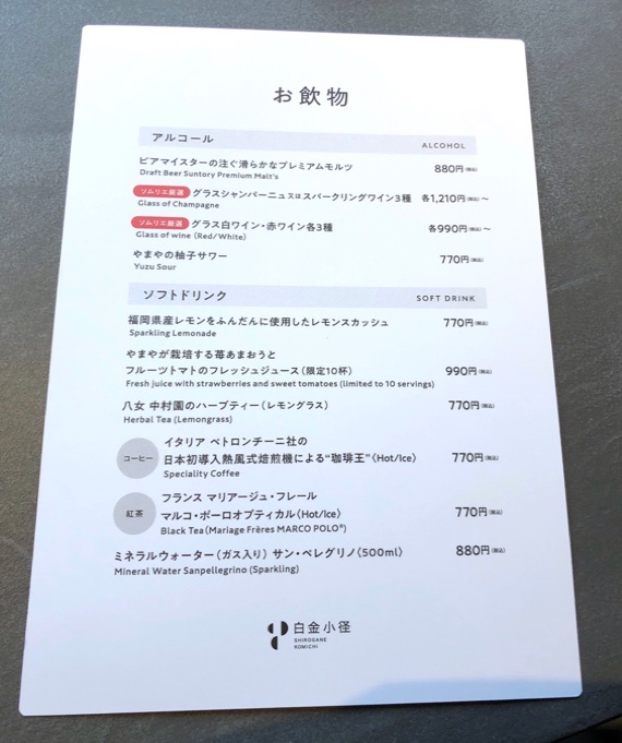 ランチ予算の目安2,500円~4,000円程度 ニューは2023年10月時点