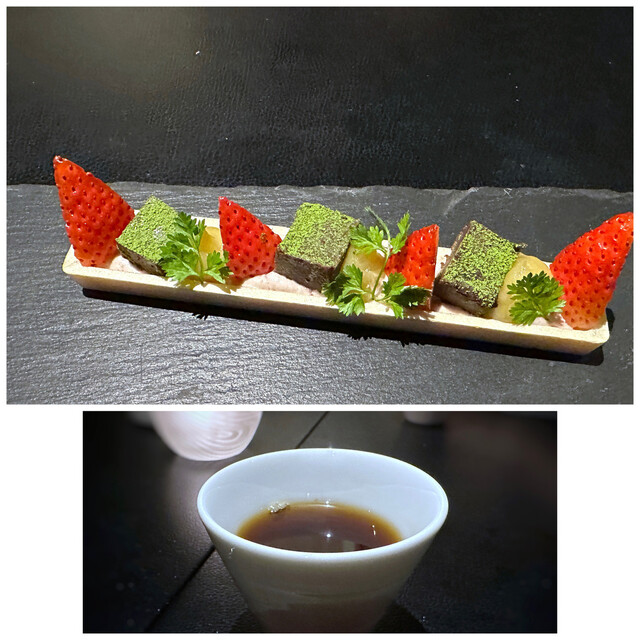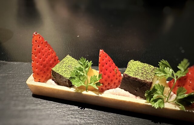 ・デザートは「最中の皮」に「苺」「チョコ」「薩摩芋ペースト」など。ビジュアルが綺麗。^^