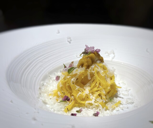 ジャガイモは千切りにされ食感がよく、全体を混ぜて頂くと雲丹の旨味とチーズの旨味が重なりいいお味です。