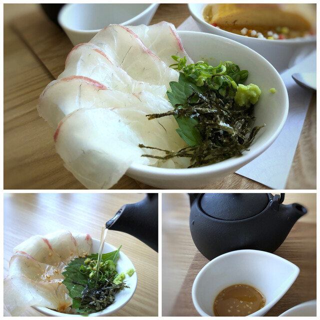 ・鯛茶漬け・・添えられた「ごまダレ」と「出し」をかけて。糸島は鯛も名物ですので、美味しい。
