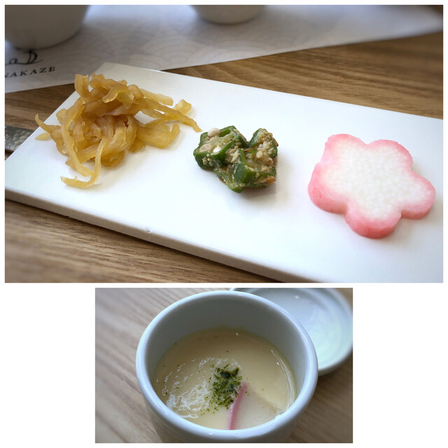 ・副菜・・切り干し大根・オクラの胡麻和え・梅型に抜いた山芋。どれも小量です。