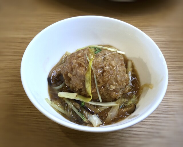 肉団子は柔らかく生姜が入るせいか、クセがないですね。普段はこういう品を好まない私が、抵抗なく頂けました。春雨や白菜、葱などがたっぷり入り入った餡のお味付けも好み。