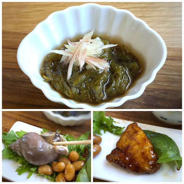 糸島もずく、黒酢で・・酢加減が優しく、酸味に弱い私にも食べやすい品。