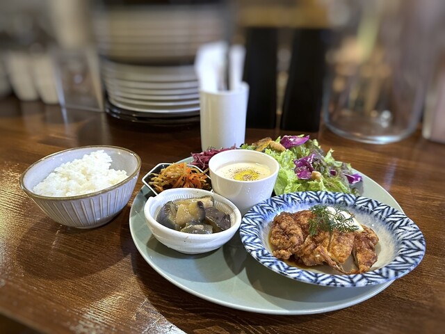 ランチプレートはメインの鶏肉や副菜も美味しく、栄養バランスもいいですね。美味しく頂きました。