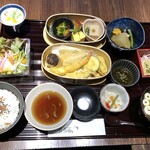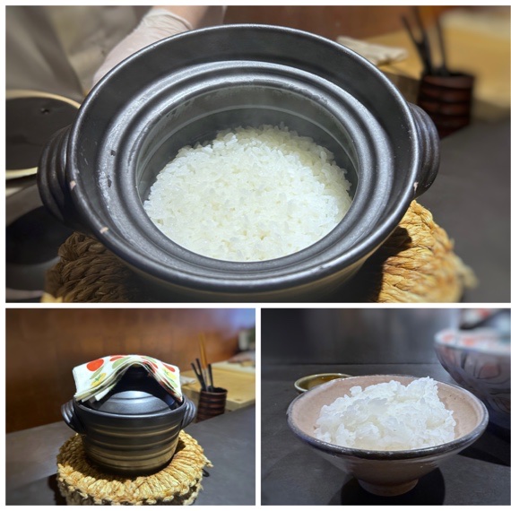 炊き立て土鍋御飯(京都祇園八代目儀兵衛「翁霞」)、鹿児島枕崎産 削りたて本枯節、唐津産:七山卵。お味噌汁、甘味など。どのお料理も美味しいですが、お刺身と手羽の一夜干し、土鍋ご飯が気にいっています。接客も丁寧で居心地もいいお店ですのでお勧めです。土鍋ご飯は余れば「おにぎり」してくださり、持ち帰れます。
