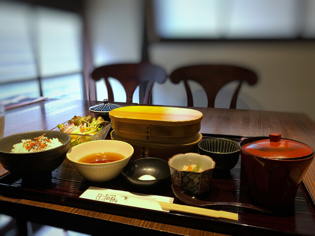 古民家を改装されたお店で趣があります。狭い小路にあるので少し見つけづらいかもしれません。ランチは「2段のわっぱ」などで工夫を凝らしたお料理です。