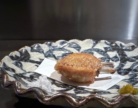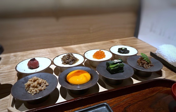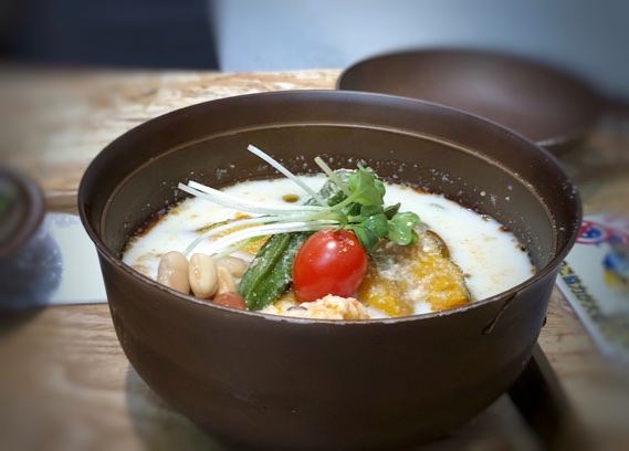 「茶懐石の始まり煮花」「スープ」「活鯛の胡麻醤油和え」「サーモンの幽庵焼き」「土鍋ごはん」「ごはんのお供8種」「お味噌汁」「わらび餅」「お抹茶」など。美味しいご飯は、贅沢ですね。ご飯のお供も8種類ありますから、味わいが変わり美味しく頂きました。ご飯が残れば「小さめの折」に入れてくださり、持ち帰りできます。ご飯の美味しさを感じ、和食のお手本のようなお料理でお勧めです。
