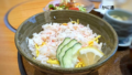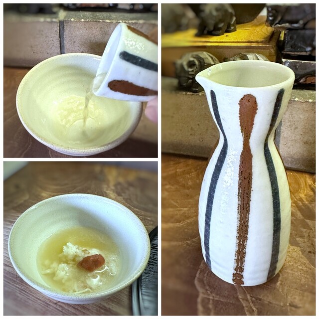 ・ご飯をお茶碗によそい「とろろ(お味付)」をかけ、梅干しを添えて頂くと、また美味しい。