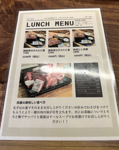 インスタで「塊」で焼くお肉のお重が美味しそうでしたので、伺いました。