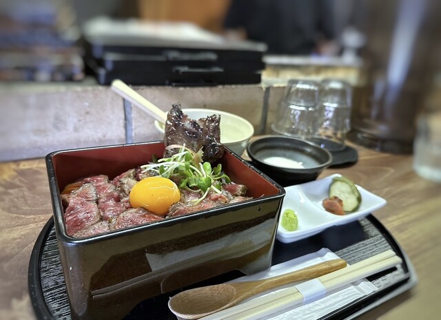 カウンター6席の小箱ですが、美味しいお肉を頂けます。ランチではカルビの塊を焼いた「ステーキ重」が人気。お肉気分で美味しいステーキを召し上がりたいときにいかがでしょう。