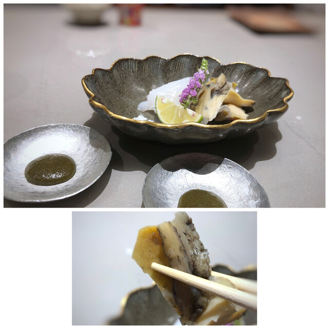鮑は柔らかいですね。肝ソースのお味もいいので、一緒に頂くと美味しいこと。