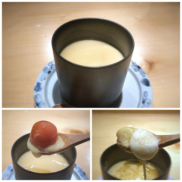 ・「トマト」と「モッツラレ」「鶏出汁」の茶碗蒸し・・茶碗蒸し自体もいいお味ですが、モッツラレと共に頂くと美味しい。